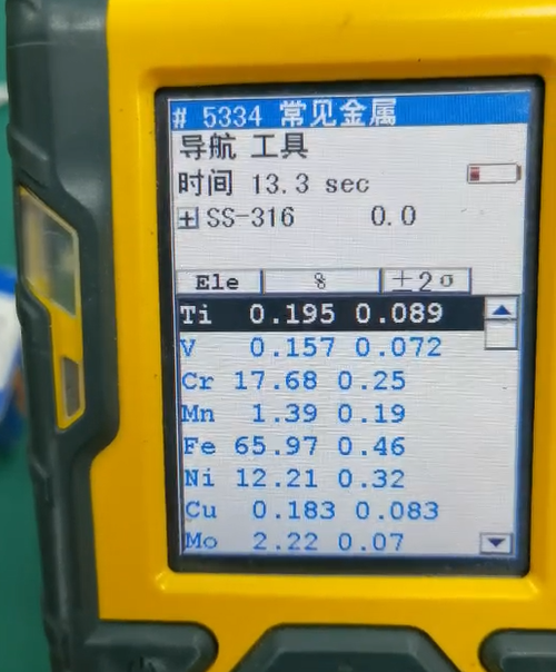 例如,“%”很容易理解,就是這個(gè)元素占這個(gè)樣品所檢測出的元素含量成分的百分之多少,比如像這個(gè)316樣品,鈦(Ti)的含量就是百分之0.195。