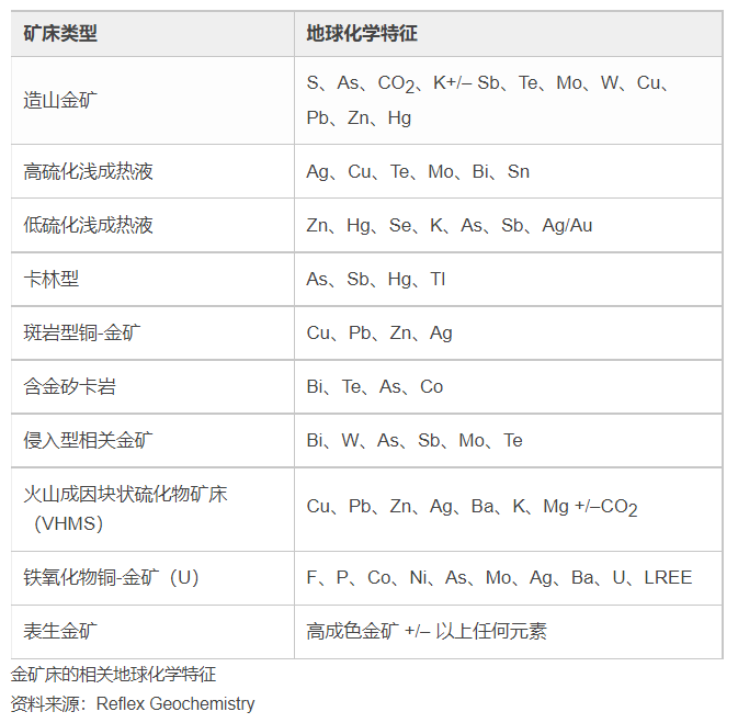 大多數(shù)金礦床都有其特定的地球化學(xué)特征(如上表所示)。XRF分析儀可以探測(cè)到這些地球化學(xué)特征,從而可使地質(zhì)學(xué)家更清楚地了解他們正在勘查的地質(zhì)系統(tǒng)。典型的金探途元素包含As、Cu、Pb、Zn、Sb、Bi、Ag和W。