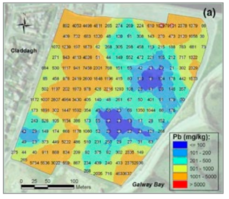 圖1. 在實(shí)施土壤修復(fù)項(xiàng)目的過(guò)程中采集到的樣本。左圖顯示為較差的采樣策略:采集的樣本數(shù)量不足,可能會(huì)出現(xiàn)大量的錯(cuò)誤。右圖為正確的采樣方式:采集足夠數(shù)量的樣本,以確保場(chǎng)地各個(gè)區(qū)域的土壤都被檢測(cè)到。
