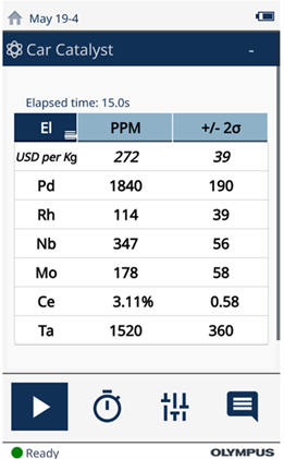 在進(jìn)行均質(zhì)化之前,回收行業(yè)應(yīng)使用Vanta XRF分析儀對相同類型的材料進(jìn)行分揀和分離??煞譃槿齻€(gè)或四個(gè)等級(jí),例如氧傳感器、三元催化器、二元催化器和柴油微粒過濾器(DPF)。為改進(jìn)分類流程,可使用“偽元素”功能在分析儀數(shù)據(jù)庫中定義具體的等級(jí)。