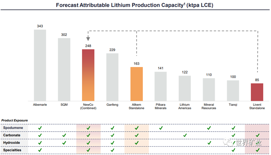 據(jù)測(cè)算,Allkem和Livent合并后,新公司預(yù)計(jì)產(chǎn)能達(dá)24.8萬噸碳酸鋰當(dāng)量(LCE),超過贛鋒鋰業(yè)(22.9萬噸)和天齊鋰業(yè)(10萬噸),位居世界第三,僅次于雅寶(Albemarle)和智利礦業(yè)化工(SQM)。