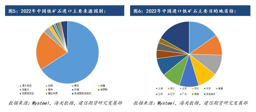 近年來,我國進(jìn)口塊礦和已燒結(jié)的鐵礦砂及其精礦占比整體呈現(xiàn)波動(dòng)向下的趨勢(shì);而鐵精粉的占比變化正好與塊礦和已燒結(jié)的鐵礦砂及其精礦相反,近年來鐵精粉占比除個(gè)別年份外,整體上逐步上升。