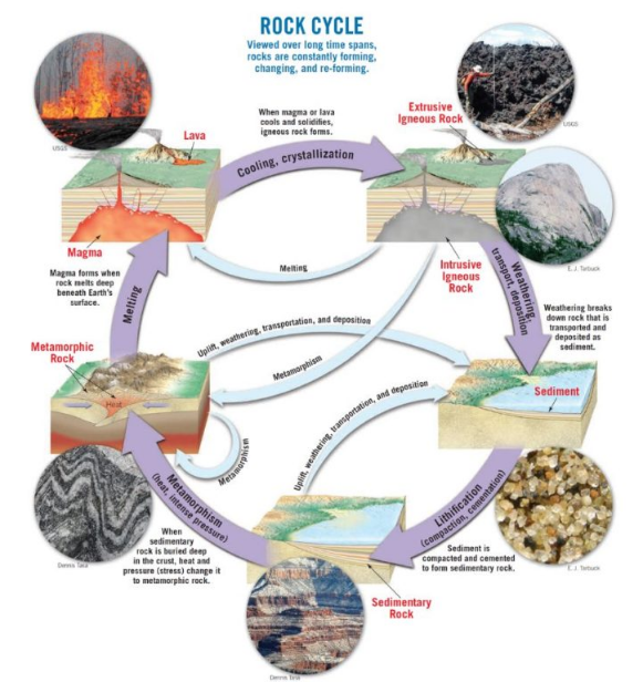 巖石的誕生:巖石是由礦物或礦物質(zhì)的天然聚合物組成。它們通過一系列地質(zhì)過程形成,始于巖石循環(huán)。這個(gè)循環(huán)包括三種主要類型的巖石:火成巖、沉積巖和變質(zhì)巖?;鸪蓭r源自于熔融巖漿,可以是在地表以下冷卻而成的(侵入巖)或在地表上凝固而成的(噴發(fā)巖)。沉積巖是由沉積物積累和壓實(shí)而形成的。而變質(zhì)巖是指之前存在的巖石經(jīng)歷了高溫高壓作用,發(fā)生了變質(zhì)。
