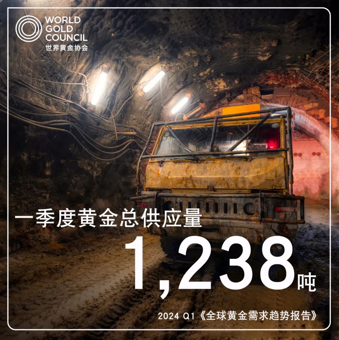 黃金供應方面,一季度,全球黃金總供應量達1238噸,同比增長3%。其中,金礦產(chǎn)量同比增長4%至893噸,創(chuàng)一季度新高。另外,一些投資者趁金價走高進行獲利了結,一季度回收金總量也創(chuàng)下自2020年三季度以來的季度新高,同比增長12%至351噸。