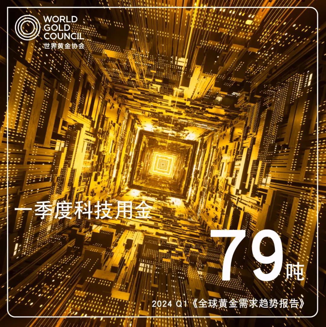 此外,在電子行業(yè)人工智能熱潮的推動下,全球科技用金需求同比回升10%至79噸,其中,一季度電子行業(yè)用金需求同比大漲13%,達64噸。