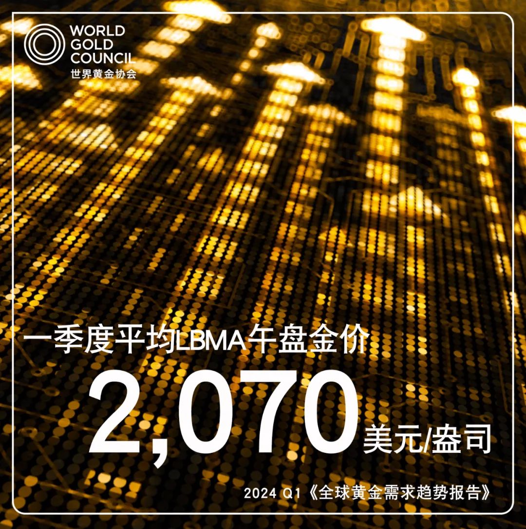 4月30日,世界黃金協(xié)會發(fā)布2024年一季度《全球黃金需求趨勢報告》顯示,一季度全球黃金需求總量(包含場外交易)同比增長3%至1238噸。世界黃金協(xié)會中國區(qū)CEO王立新表示,這成為2016年以來最亮眼的一季度戰(zhàn)績。而不含場外交易的一季度全球黃金總需求為1102噸,較2023年同期下降5%。