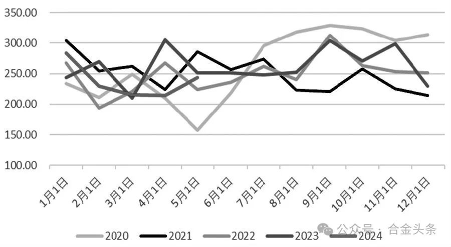 圖為硅鐵月度產(chǎn)量(單位:萬噸)