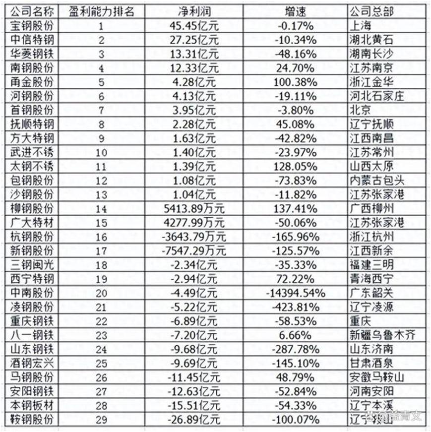 在29家上市鋼企中,有15家企業(yè)在2024年上半年實現(xiàn)盈利,另外14家則是出現(xiàn)虧損。其中,寶鋼集團上半年實現(xiàn)凈利潤最高,為45.45億元;而鞍鋼股份虧損最多,上半年虧損達26.89億元。山東省屬鋼鐵企業(yè)山東鋼鐵,上半年則是虧損9.68億元,同比下降287.78%。