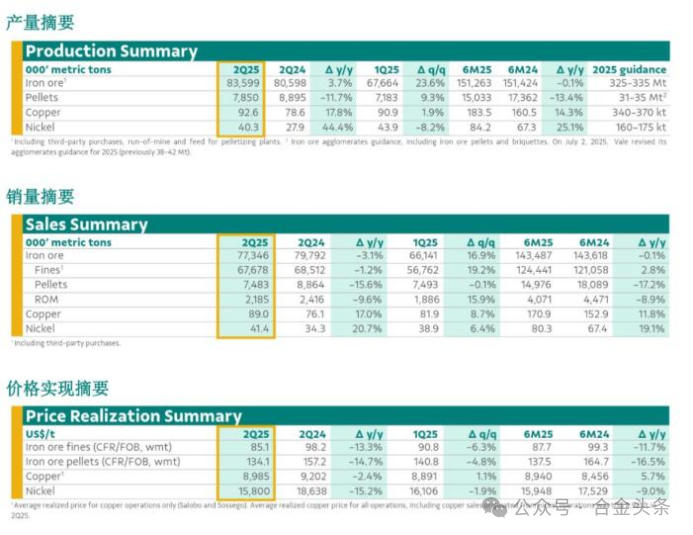 當?shù)貢r間22日,總部位于巴西里約熱內(nèi)盧的礦業(yè)巨頭淡水河谷發(fā)布2025年第二季度產(chǎn)銷量報告稱,報告指出,鐵礦石業(yè)務方面,新資產(chǎn)逐步增產(chǎn),運營可靠性不斷提升,這些將支持公司更順利地完成2025年生產(chǎn)計劃。
