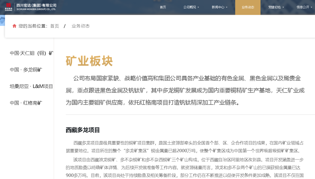 作為蜀道集團(tuán)礦業(yè)板塊的核心直屬企業(yè),宏達(dá)集團(tuán)在全球礦業(yè)資源投資領(lǐng)域早已成果斐然。官網(wǎng)資料顯示,宏達(dá)集團(tuán)參與投資了世界超大型銅礦項(xiàng)目 —— 西藏多龍銅礦,該銅礦儲(chǔ)量巨大,一旦全面開發(fā),將極大提升我國在全球銅礦資源領(lǐng)域的話語權(quán);在東非,集團(tuán)投資建設(shè)了首個(gè)長流程鋼鐵礦冶聯(lián)合項(xiàng)目 —— 坦桑尼亞礦冶一體項(xiàng)目(控股),助力非洲當(dāng)?shù)氐V業(yè)產(chǎn)業(yè)升級(jí),同時(shí)也為我國鋼鐵產(chǎn)業(yè)發(fā)展提供穩(wěn)定的原料供應(yīng);此外,在國內(nèi),宏達(dá)集團(tuán)參與了中國儲(chǔ)量大、資源價(jià)值高的釩鈦磁鐵礦項(xiàng)目 —— 攀枝花紅格南礦及大型鉬銅多金屬礦等戰(zhàn)略性礦產(chǎn)資源開發(fā),累計(jì)參與戰(zhàn)略性礦產(chǎn)資源達(dá) 8 宗。